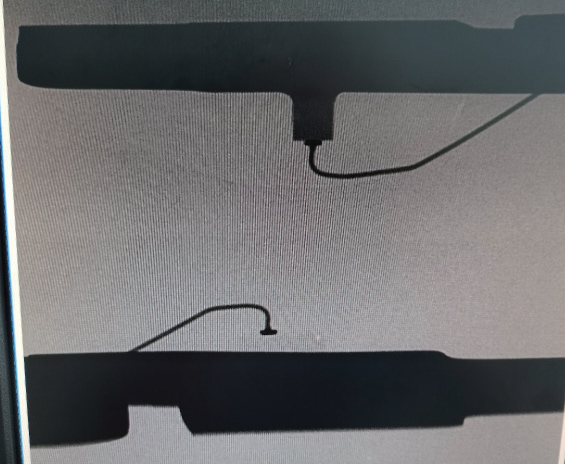 X 光发现光耦内部金线绑定异常,出现金线 所示,输出端金线绑定为SQ-LOOP 结构。