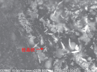 扫描电子显微镜检查发现,白色金属光泽多余物呈枝晶状,见图29,且多余物位置含有A1、Ag、Na、K等元素,如图30 所示。