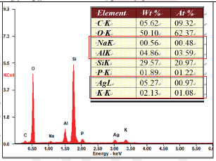 材料核实含有Na(0.56%)、Ag(5.27%)、Al(4.86%)、K(2.13%)等元素,根据制造流程,初步判定晶片表面异常元素来源为银胶。银胶中的主要成为是Ag(75%~80%)+Si(10%~15%)+ 金属元素(5%~10%),其金属元素包含Na 元素,根据晶片元素以及银胶成分对比,锁定晶片表面污染为银胶残留。