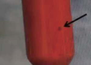 2)输出侧导线变形、刮伤。模拟在拔出导线时镊子误与相邻产品上导线接触,镊子接触相邻产品上的导线 所示。