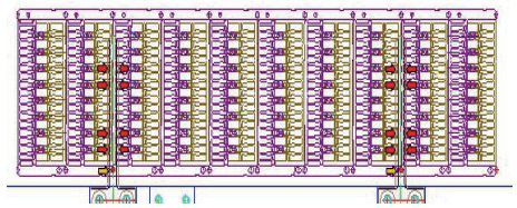 5.2 金属异物为了防止帧错位,设置新的帧载体,增加定位块来正确设置帧,现有引脚只有2 个位置/ 帧(黄色箭头),增加定位块到16 个位置/ 帧(红色箭头),共计18 个位置/ 帧。